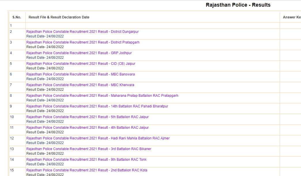 Rajasthan Police Constable Result 2022Post Name – Constable(Police Department Of Rajasthan) | |||||