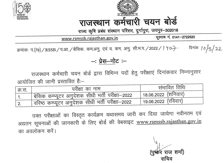 RSMSSB Computer Instructor Admit Card 2022Post Name – Computer Instructor(Rajasthan Staff Selection Board (RSMSSB)) | |||||