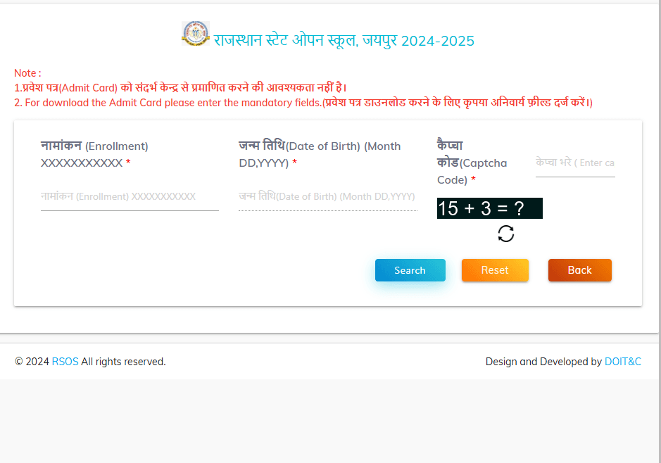 Rajasthan RSOS Admit Card 2024Post Name – Class 10th & 12th (Rajasthan State Open School , Jaipur) | |||||