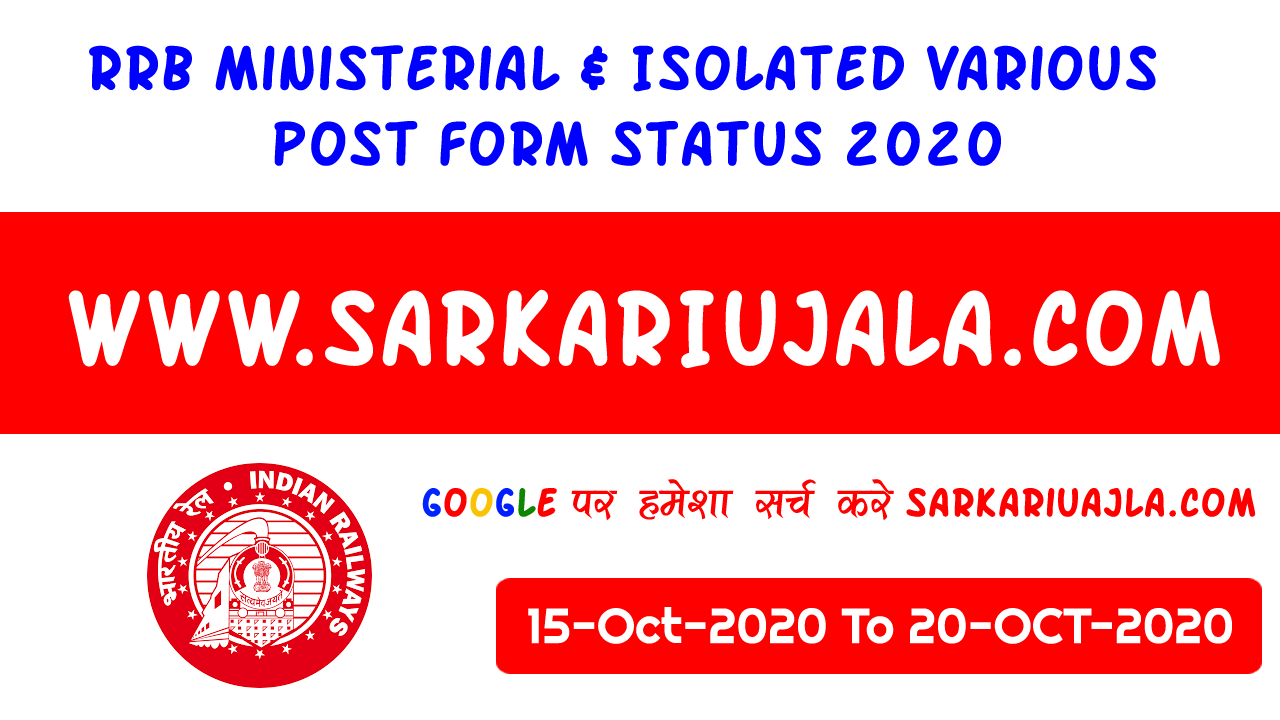 RRB Ministerial & Isolated Various Post Form Status 2020 | |||||