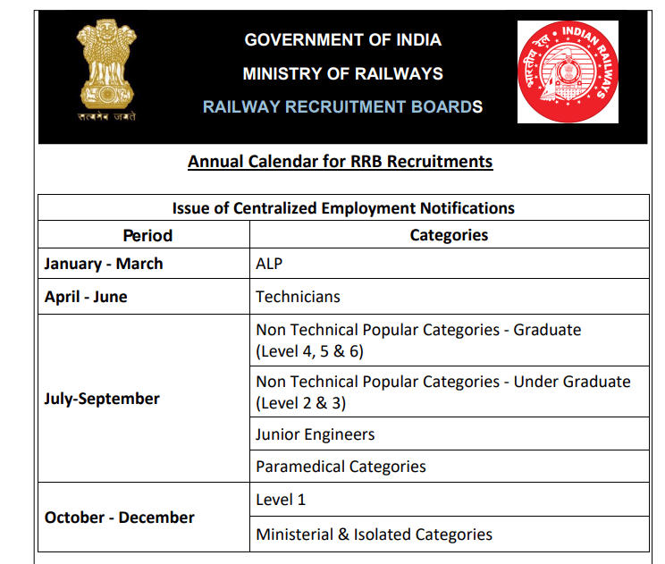 RRB Annual Calendar 2024Post Name – ALP, Technician, NTPC , Engineer & Group D(RAILWAY RECRUITMENT BOARD) | |||||