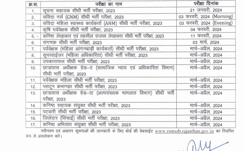RSMSSB Annual Exam Calendar 2024 | |||||