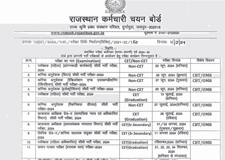 RSMSSB Annual Calendar 2024-25Post Name – Various Posts(Rajasthan Staff Selection Board) | |||||