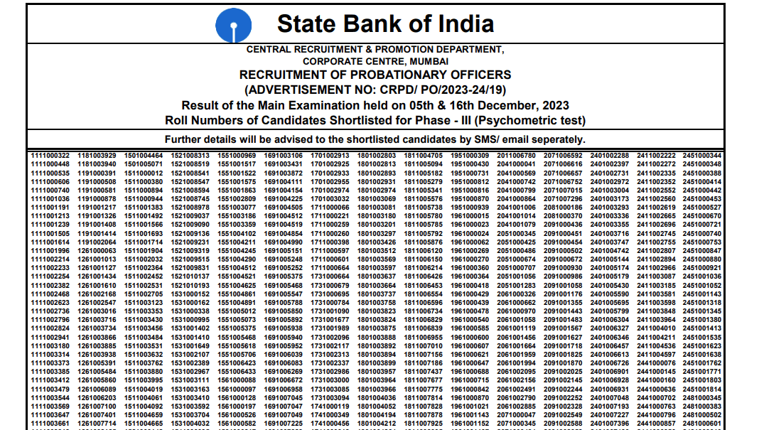 SBI PO Admit Card 2023Post Name – Probationary OfficerAdvt. No: CRPD/PO/2023-24/19(State Bank Of India) | |||||