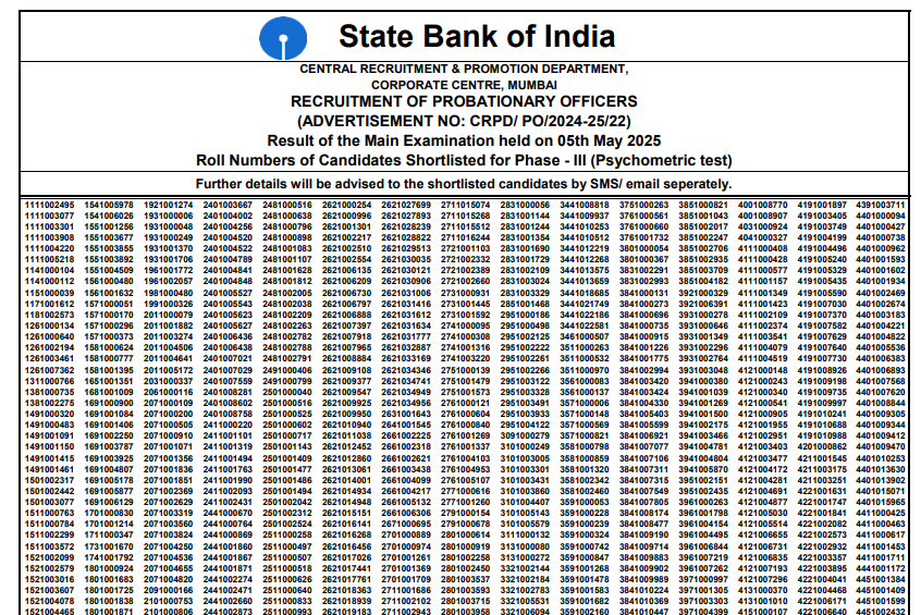 SBI PO Admit Card 2025Post Name – Probationary Officer (CRPD/ PO/ 2024-25/22)(State Bank Of India) | |||||