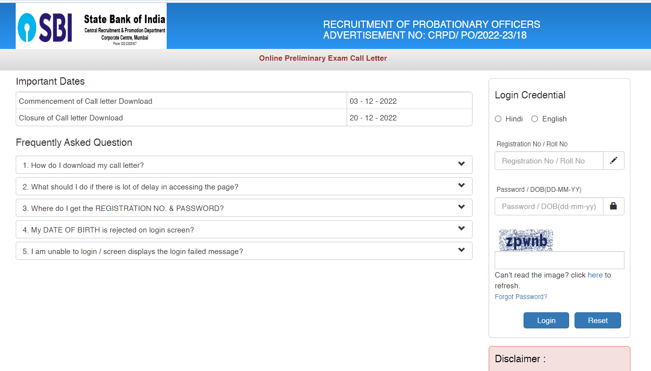 SBI PO Admit Card 2022Post Name – Probationary OfficerAdvt. No: CRPD/PO/2022-23/18(State Bank Of India) | |||||