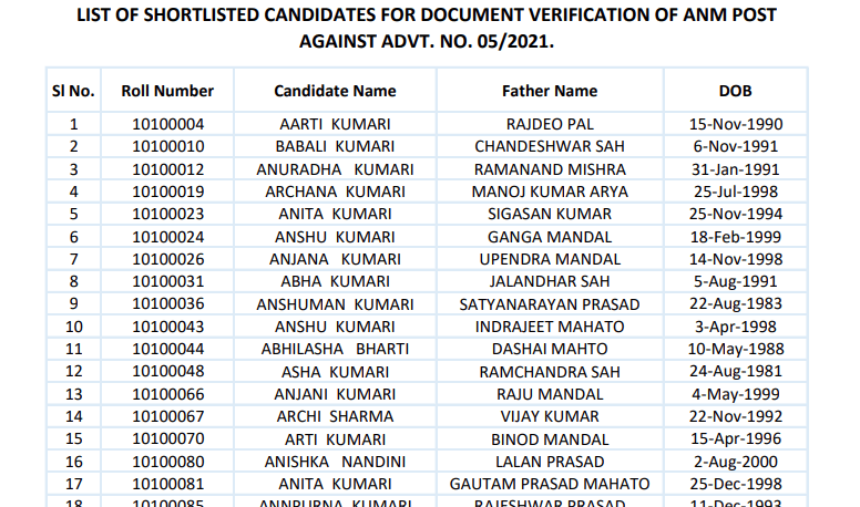 SHSB Bihar ANM Admit Card 2021Post Name – ANM (Adv. 05/2021)(State Health Society Bihar) | |||||
