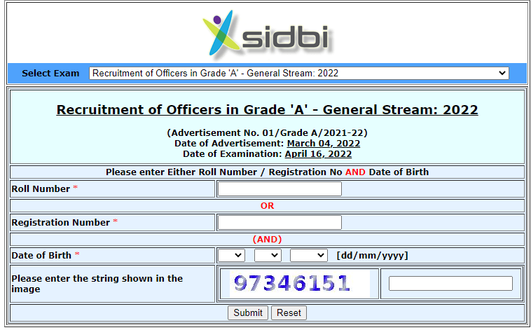 IMPORTANT DATESDate of Exam – 16-04-2022 Admit Card – 07-04-2022 Result Date– 14-05-2022 Final Result – 13-07-2022 | VACANCY DETAILSExam Name – SIDBI Assistant Manager Recruitment 2022 Total No of vacancy- 100 Posts Advt. No. – 01/Grade A/ 2021-22 | ||||
