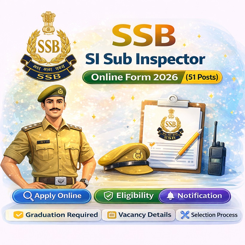 Post Description – SSB Shastra Seema Bal is inviting online applications for Sub-Inspector for 51 posts. Interested people meet all the eligibility criteria, apply online Details Of Recruitment Of SSB SI Sub Inspector Online Form 2026Posts Name – Sub-Inspector Number Of Posts – 51 Posts Category Wise Posts – Sub Inspector (Pioneer)- 21 Posts Sub Inspector (Communication) – 20 Posts Sub Inspector (Staff Nurse) – 10 Posts Pay Scale – Rs. 35,400 – 1,12,400/- Education Qualification – Sub Inspector (Pioneer)– Degree In Civil Engineers From A Recognized University. Sub Inspector (Communication) – BE / B.Tech Degree in Electronics and Communication OR Computer Science OR IT OR Science with PCM . Sub Inspector (Staff Nurse) – 10+2 with Science and General Nursing Diploma. And Registration in Nursing Council with 2 Year Experience Physical Standard Test Details – Height- 170 Cms (Male), 157 Cms (Female) ST- 162.5 (Male), 150 Cms (Female) Race- 1.6 Kms In 6 Minutes 30 Second (Male) & 800 Meter In 4 Minutes. How to Apply Online SSB SI Sub Inspector Online Form 2026 – Candidates can apply through link provided below or they can also apply through official site of the Sastra Seema Bal before 20 April 2026. Required Documents For Online Application – Educational Mark sheet And Certificates Aadhar Card / Pan Card Passport Size Photo Signature Selection Mode – Written Exam PET/PST Merit List