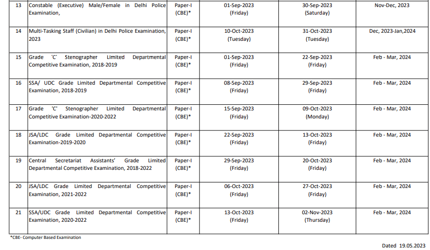 SSC Exam Calendar 2023-24(Staff Selection Commission)Post Name – Various Recruitment Examination Conducted by SSC | |||||