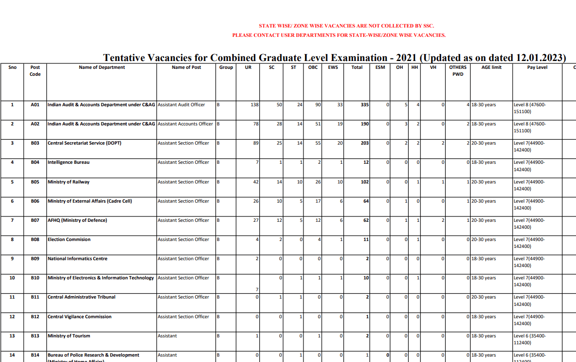 SSC CGL Recruitment 2021-22Post Name – Combined Graduate Level (Various Posts)(Staff Selection Commission) | |||||
