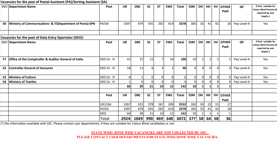 SSC CHSL 10+2 Online Form 2022Post Name – LDC/JSA, Postal Assistant/Sorting Assistant & DEO(Staff Selection Commission) | |||||