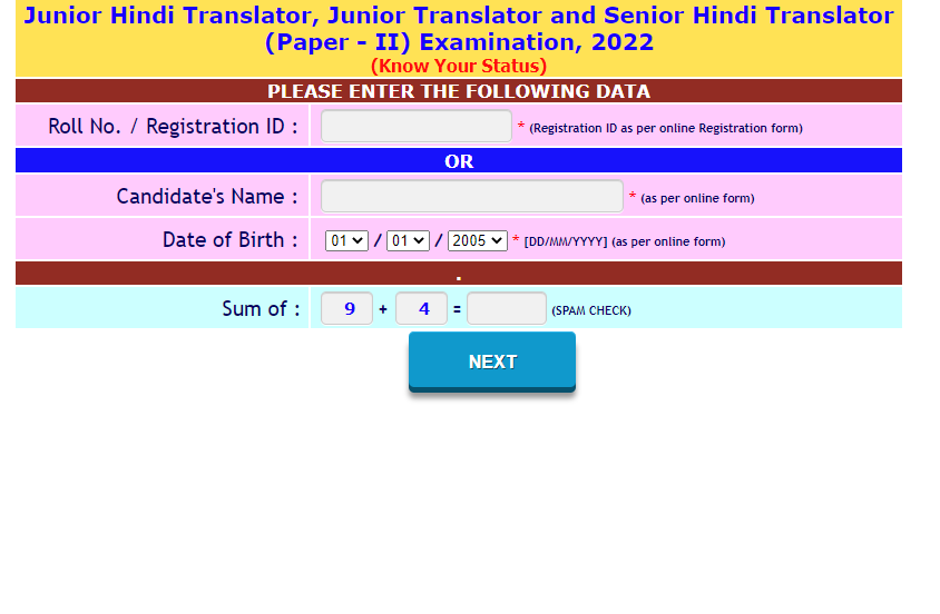 IMPORTANT DATESExam Date – 01-10-2022 Application Status – 10-09-2022 Admit Card – 28-09-2022 Answer Key – 06-10-2022 Result Date– 03-11-2022 Tier II Exam – 04-12-2022 | VACANCY DETAILSExam Name – SSC Junior Hindi Translator JHT Online Form 2022 Total Posts – N/A | ||||