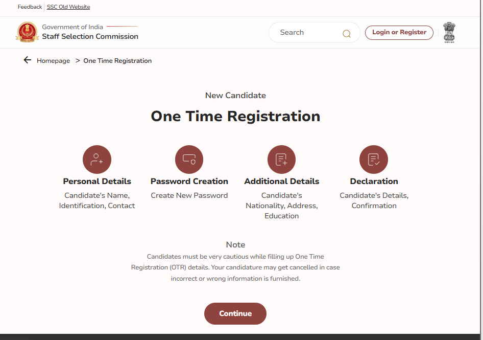 SSC OTR One Time Registration Online Form 2025Form Name – One Time Registration(Staff Selection Commission) | |||||