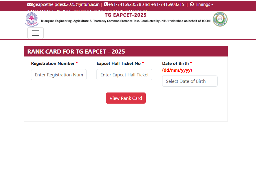 TS EAPCET Hall Ticket Admit Card 2025Post Name – Engineering, Agriculture & Pharmacy Common Entrance Test(JNTU Hyderabad on behalf of TGCHE) | |||||