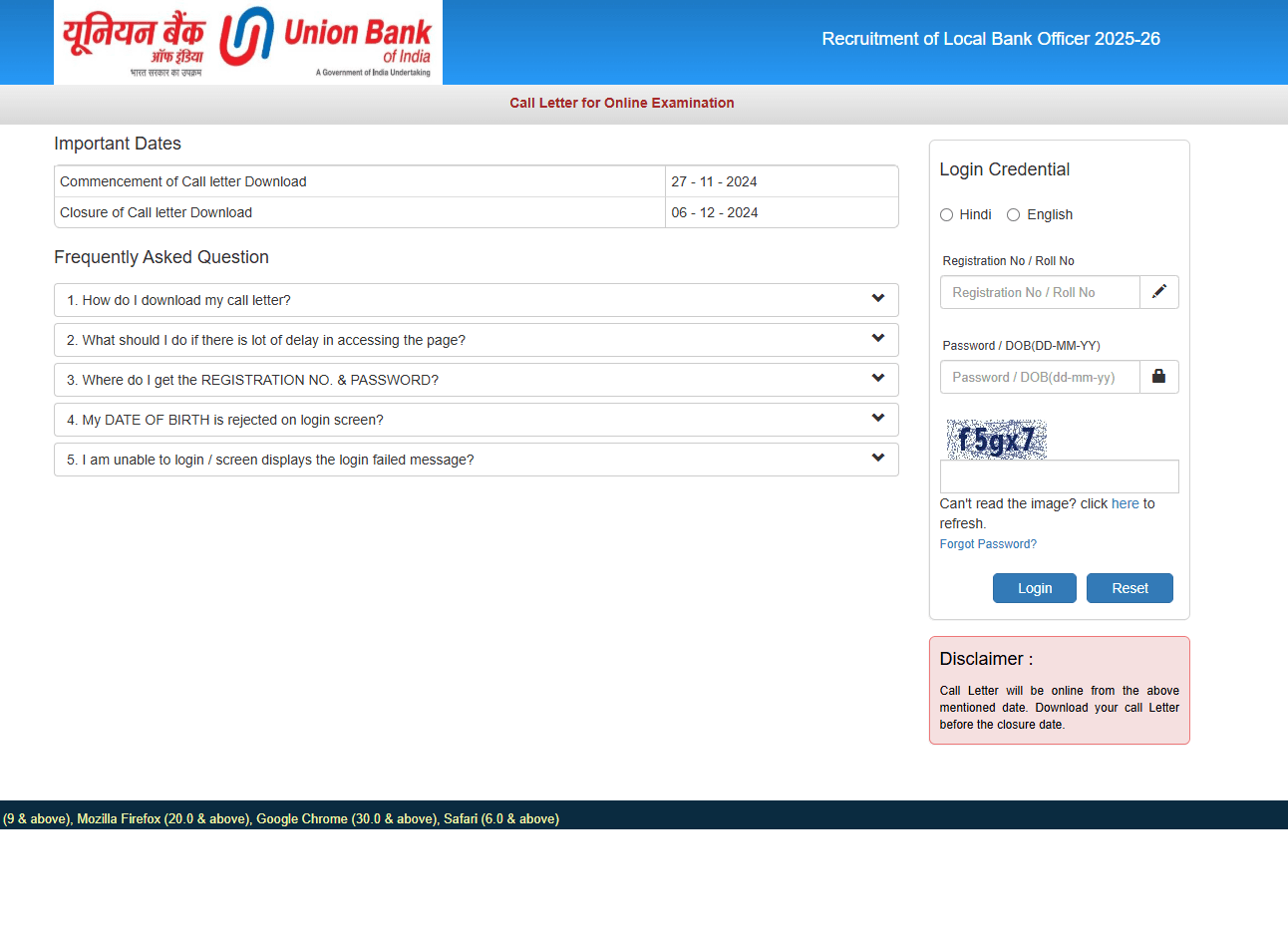 UBI Local Bank Officer Admit Card 2024Post Name – Local Bank Officer (LBO)(Union Bank of India) | |||||