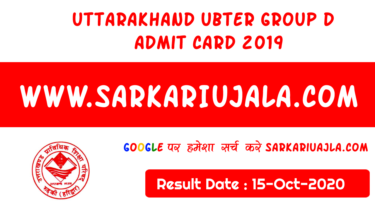 Uttarakhand UBTER Group D Admit Card 2019 | |||||