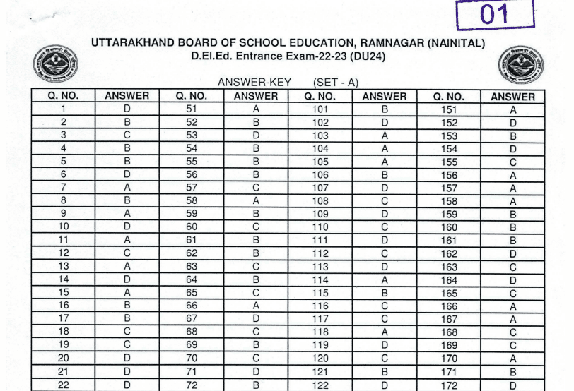 IMPORTANT DATESExam Date – 30-11-2024 Admit Card – 14-11-2024 Result Date– Notify Later Answer Key- 03-12-2024 | VACANCY DETAILSExam Name – UK D.El.ED Entrance Exam 2022-23 Session- 2022-23 | ||||