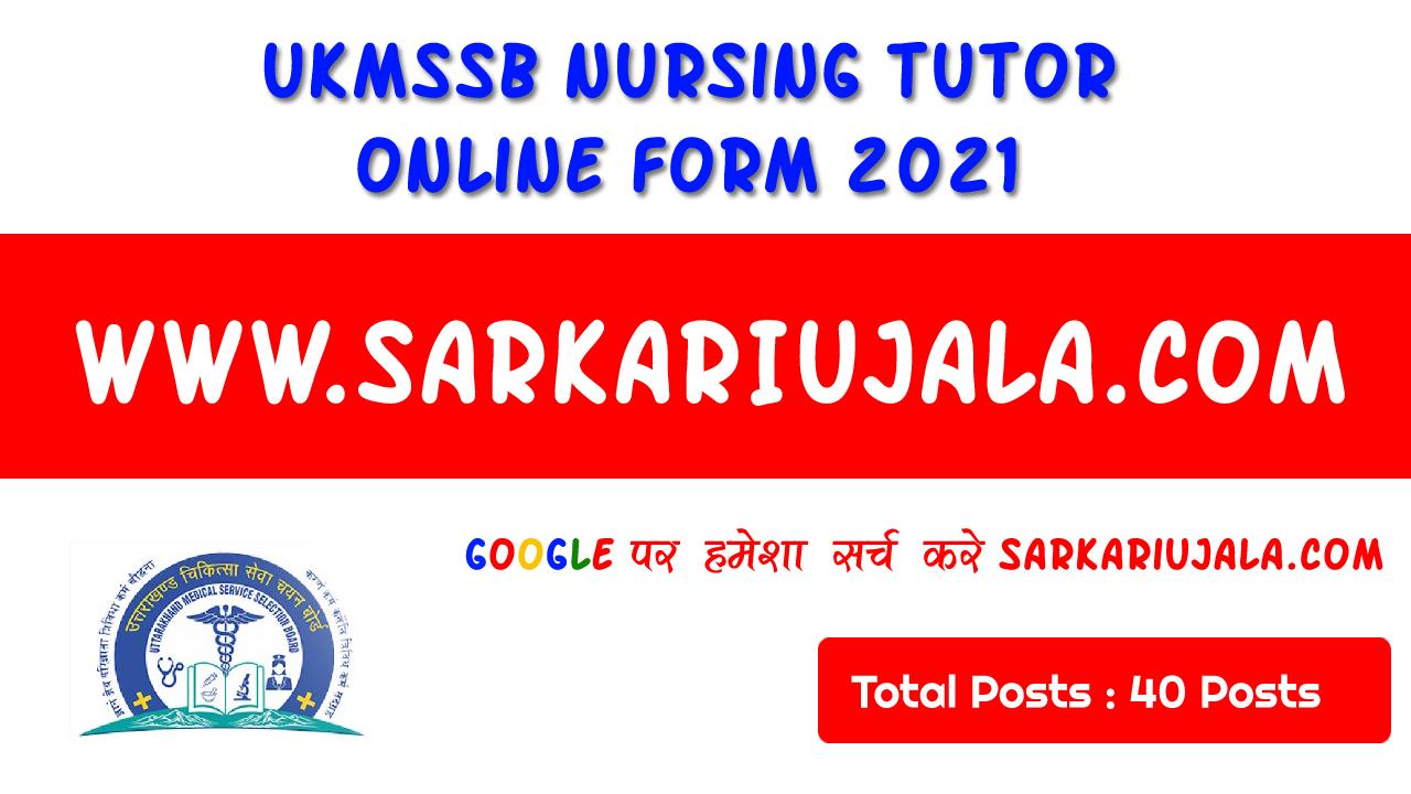 UKMSSB Nursing Tutor Recruitment 2021Post Name – Nursing Tutor(Uttarakhand Medical Service Selection Board) | |||||