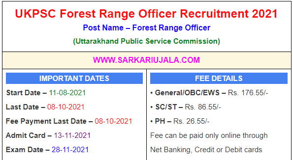 UKPSC Forest Range Officer Recruitment 2021Post Name – Forest Range Officer(Uttarakhand Public Service Commission) | |||||