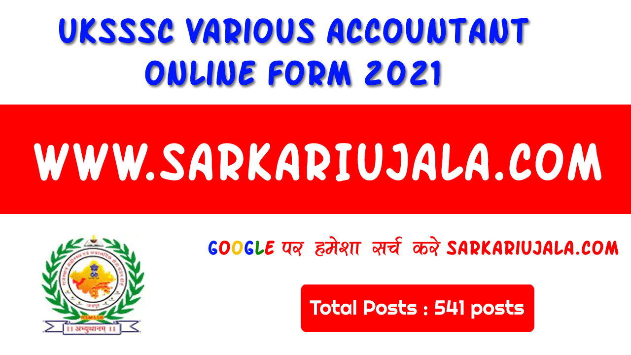 Post Description –Uttarakhand Subordinate Service Selection Commission is inviting online applications for Various Accountant for 541 posts. Interested people meet all the eligibility criteria, apply online Details Of Recruitment Of UKSSSC Various Accountant Online Form 2021Posts Name – Various Accountant Number Of Posts – 541 Posts Category Wise Posts – Asst. Review Officer (Sachivalya) – 01 Posts Accountant (Women’s welfare) – 08 Posts Accountant – 01 Posts Asst. Accountant – 467 Posts Cashier Cum Asst. Accountant – 01 Posts Auditor – 53 Posts Auditor – 01 Posts Auditor – 01 Posts Auditor – 02 Posts Office Assistant – 04 Posts Education Qualification – Asst. Review Officer (Sachivalya) – B.Com With 4000 Hindi/English Key Per/Hours Accountant (Women’s welfare) – B.Com Accountant – M.Com Asst. Accountant – BBA With 4000 Hindi/English Key Per/Hours Cashier Cum Asst. Accountant – B.Com Auditor – B.Com With CCC Certificate Auditor – B.Com Auditor – B.Com Auditor – B.Com 4000 Hindi/English Key Per/Hours Office Assistant – B.Com 6000 Hindi/English Key Per/Hours How to Apply Online UKSSSC Various Accountant Online Form 2021 – Candidates can apply through link provided below or they can also apply through official site of the Uttarakhand Subordinate Service Selection Commission before 26/March/2021. Required Documents For Online Application – Educational Mark sheet And Certificates Aadhar Card / Pan Card Passport Size Photo Signature Selection Mode – Written Examination Skill Test Final Merit List