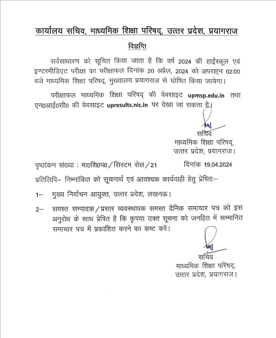 UP Board 10th, 12th Annual Exam 2024 | |||||