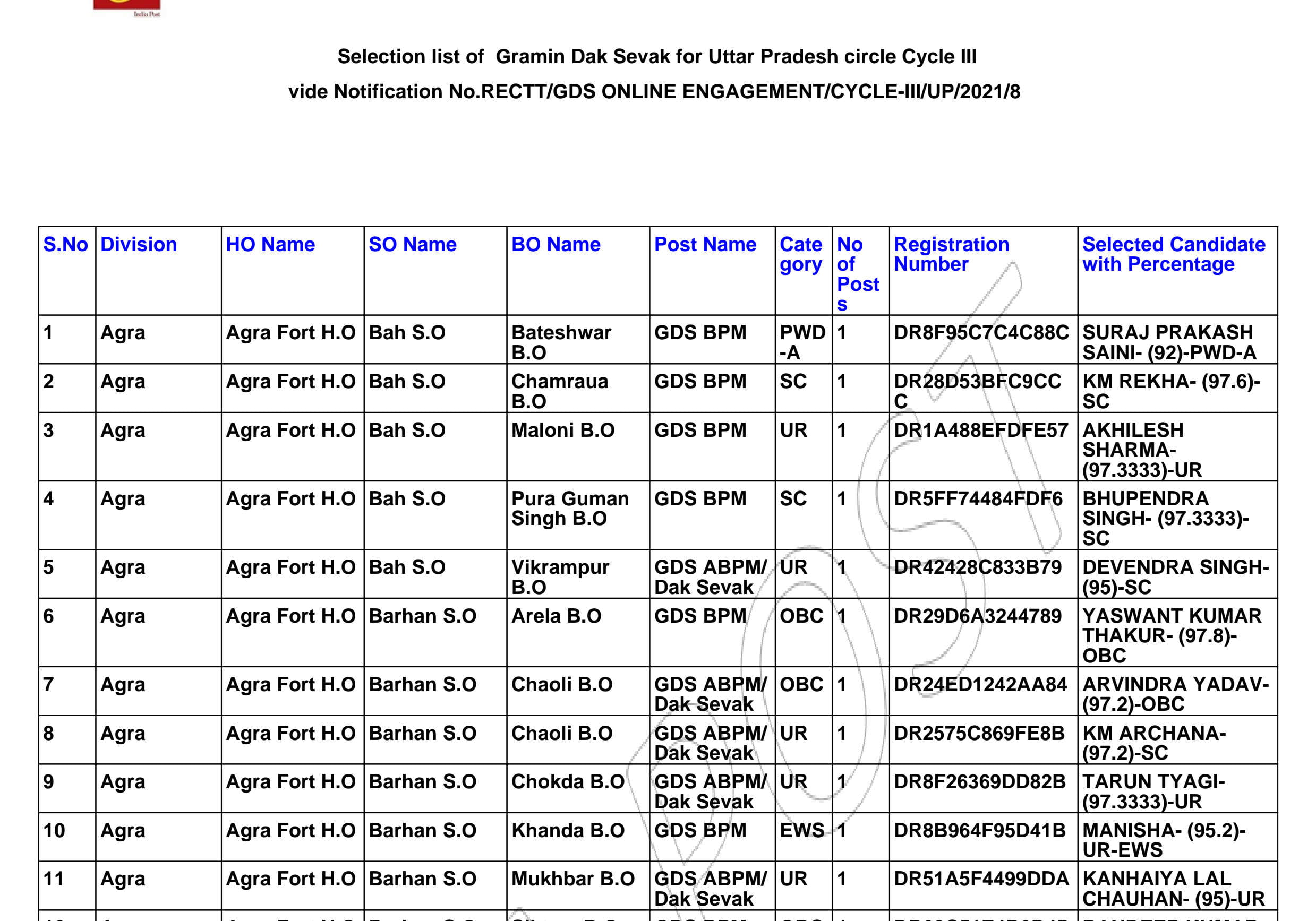 India Post UP GDS Recruitment 2021Post Name – Gramin Dak Sevak(Department of Post (India Post)) | |||||