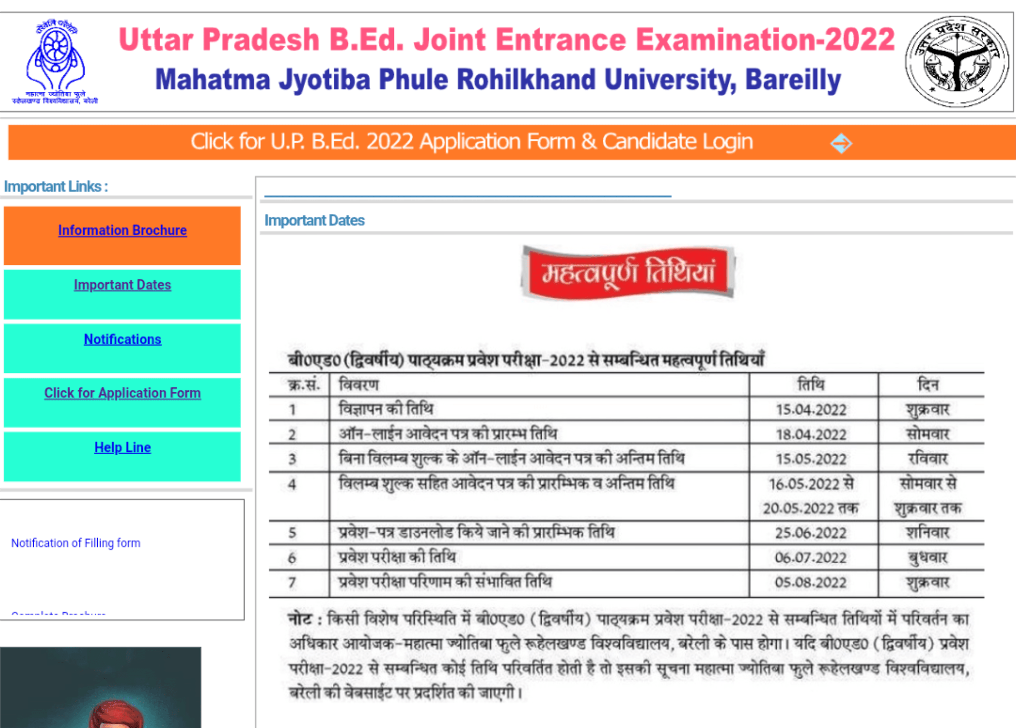 UPBED Admission Online Form(Mahatma Jyotiba Phule Rohilkhand University, Bareilly) Exam Name – B.Ed Combined Entrance Test | |||||