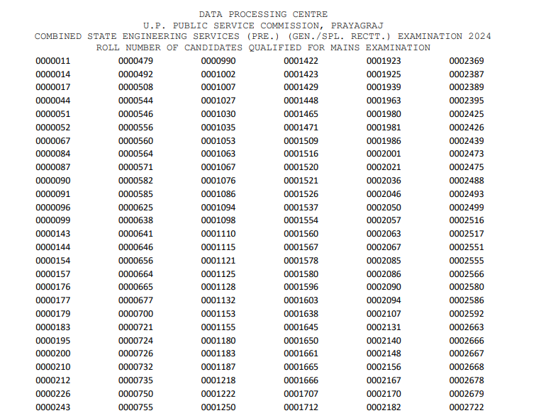 UPPSC Assistant Engineer AE 2024 Pre Result | |||||