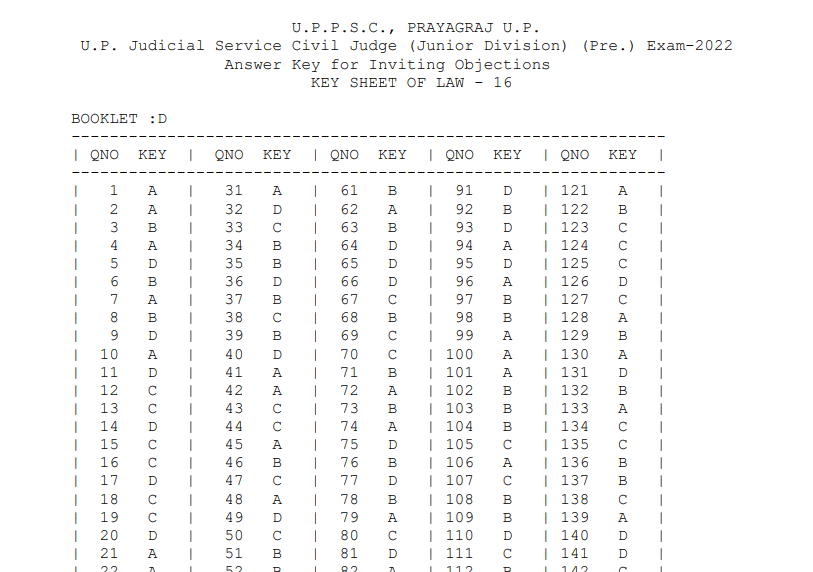 IMPORTANT DATESDate of Exam – 12-02-2023 Admit Card – 30-01-2023 Answer Key – 14-02-2023 Result Date – 16-03-2023 Main Exam Date- 23-25 May 2023 Mains Admit Card –11-05-2023 Main Result – 02-08-2023 Interview Start– 16-08-2023 Final Result – 30-08-2023 Marks- 31-10-2023 | VACANCY DETAILSExam Name – UPPSC Civil Judge PSC Recruitment 2022 Total Vacancy- 303 Posts Advt. No. – A-5/E-1/2022 | ||||