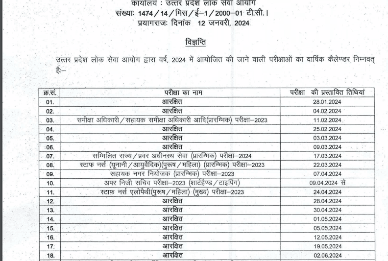 UPPSC Exam Calendar 2024 | |||||