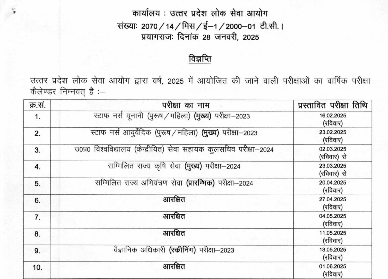 UPPSC Exam Calendar 2025 | |||||||||||||||||||||||||||||||||||||||