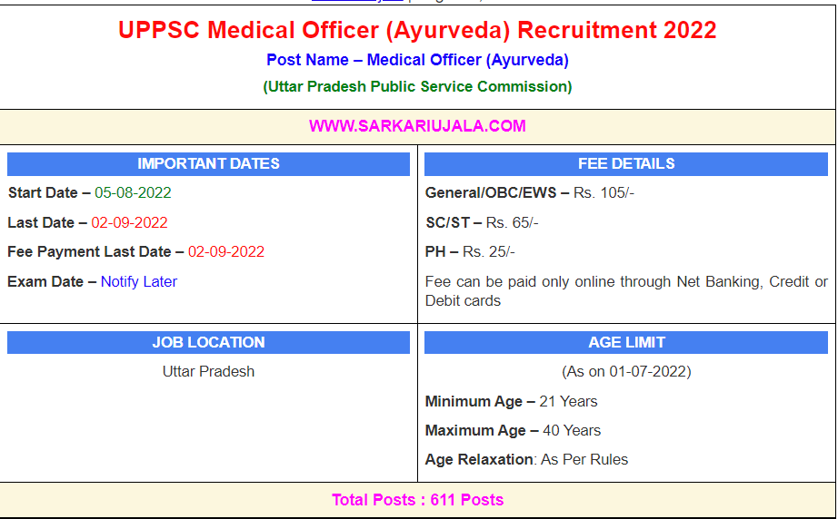 UPPSC Medical Officer (Ayurveda) Recruitment 2022Post Name – Medical Officer (Ayurveda)(Uttar Pradesh Public Service Commission) | |||||