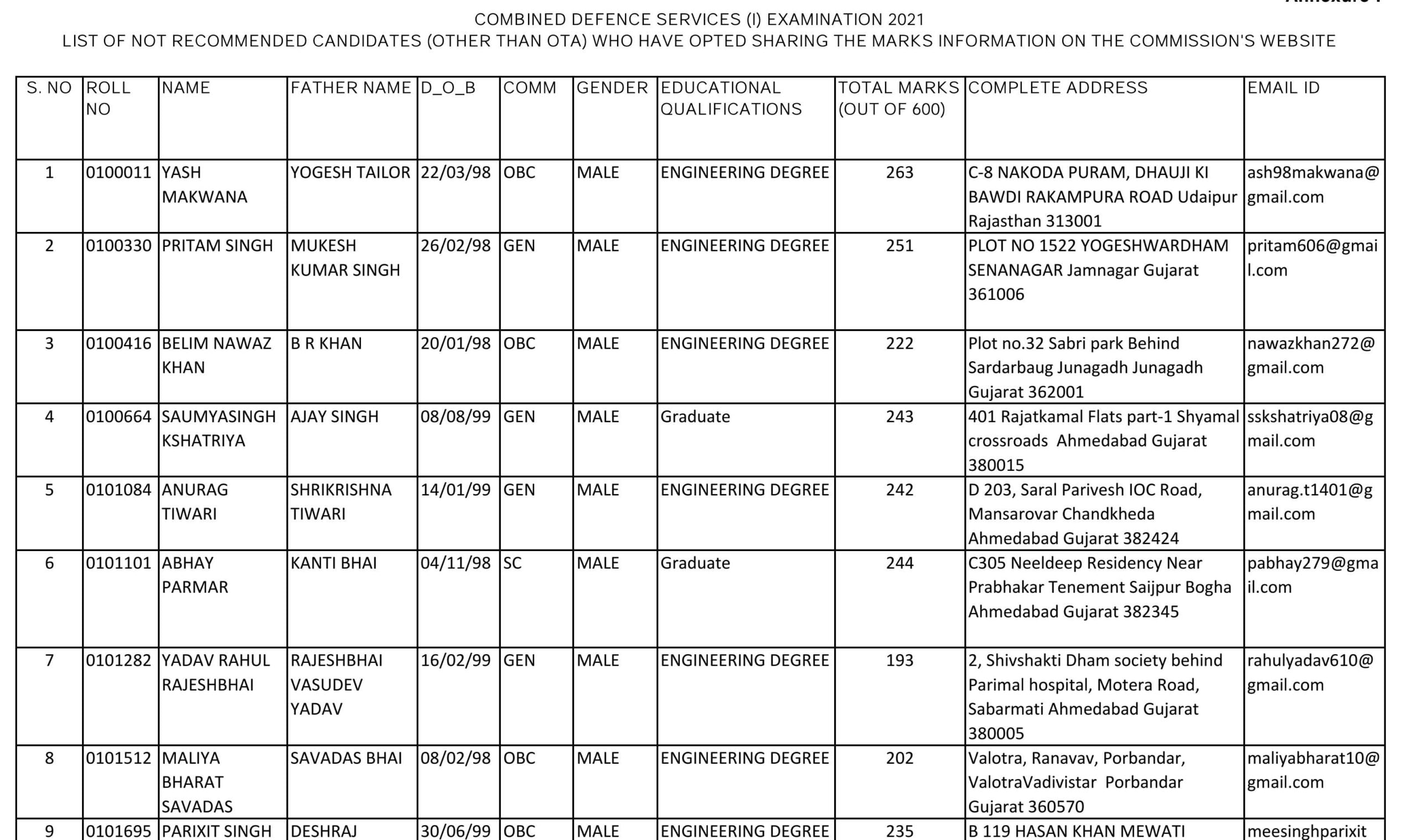 Download Marks For Not Qualified Candidates | Click Here | ||||
