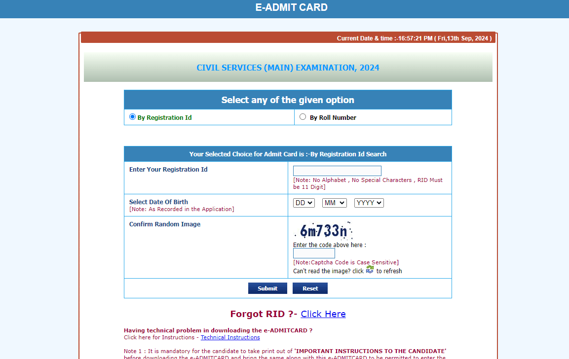 UPSC Civil Service IAS/IFS Admit Card 2024 | |||||