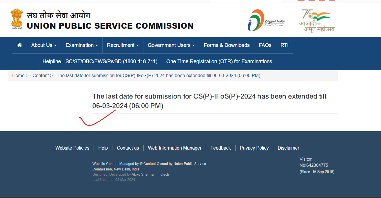 Pay Scale – As Per Rules Education Qualification – IAS- Graduation Degree in Any Stream IFS- Graduation Degree as one of Subject Animal Husbandry & Veterinary Science, Botany, Chemistry, Geology, Mathematics, Physics, Statistics and Zoology, Agriculture or Equivalent How to Apply Online UPSC Civil Services IAS/IFS Online Form 2024 – Candidates can apply through link provided below or they can also apply through official site of the Union Public Service Commission before 05/March/2024. Required Documents For Online Application – Educational Mark sheet And Certificates Aadhar Card / Pan Card Passport Size Photo Signature Selection Mode – Preliminary Examination. Main Examination. Personality Test (Interview) Merit List
