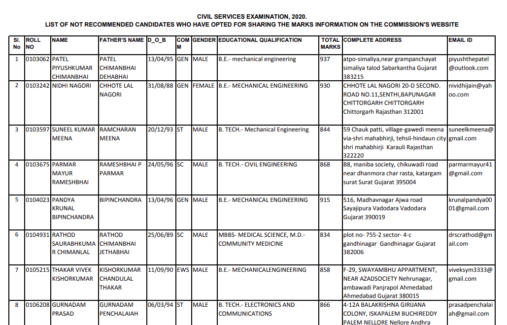 Download Civil Services Marks for Not Qualified Candidate | Click Here | ||||
