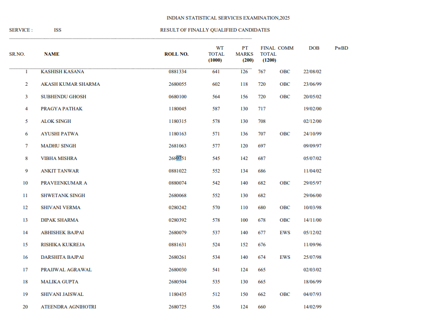 UPSC IES ISS Final Result with Marks 2025