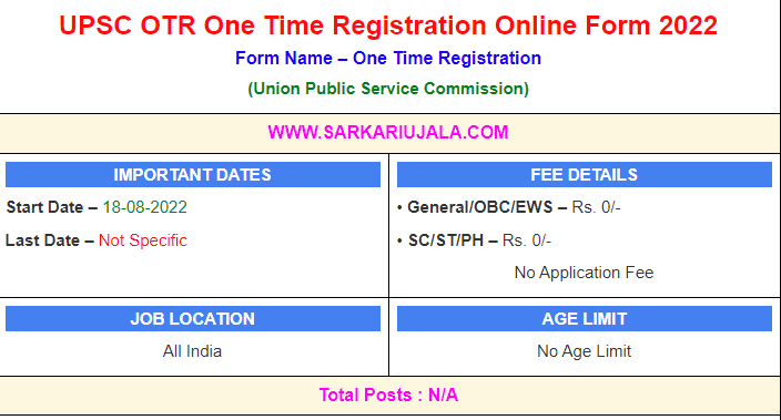 UPSC OTR One Time Registration Online Form 2022Form Name – One Time Registration(Union Public Service Commission) | |||||