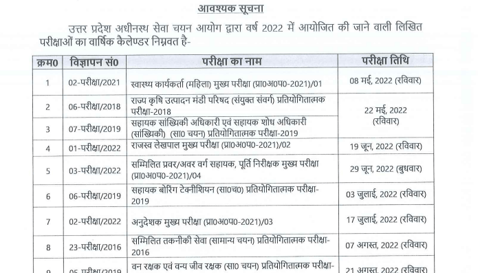 UPSSSC Annual Exam Calendar 2022 | |||||