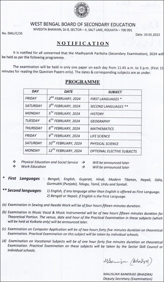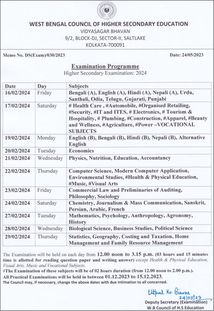 IMPORTANT DATES10th Exam Date – 02-12 Feb 2024 12th Exam Date – 16-29 Feb 2024 10th Result – 02-05-2024 @ 09:45 AM 12th Result – 08-05-2024 @ 01 PM | EXAM DETAILSExam Name – West Bengal Board 10th & 12th Exam 2024 | ||||